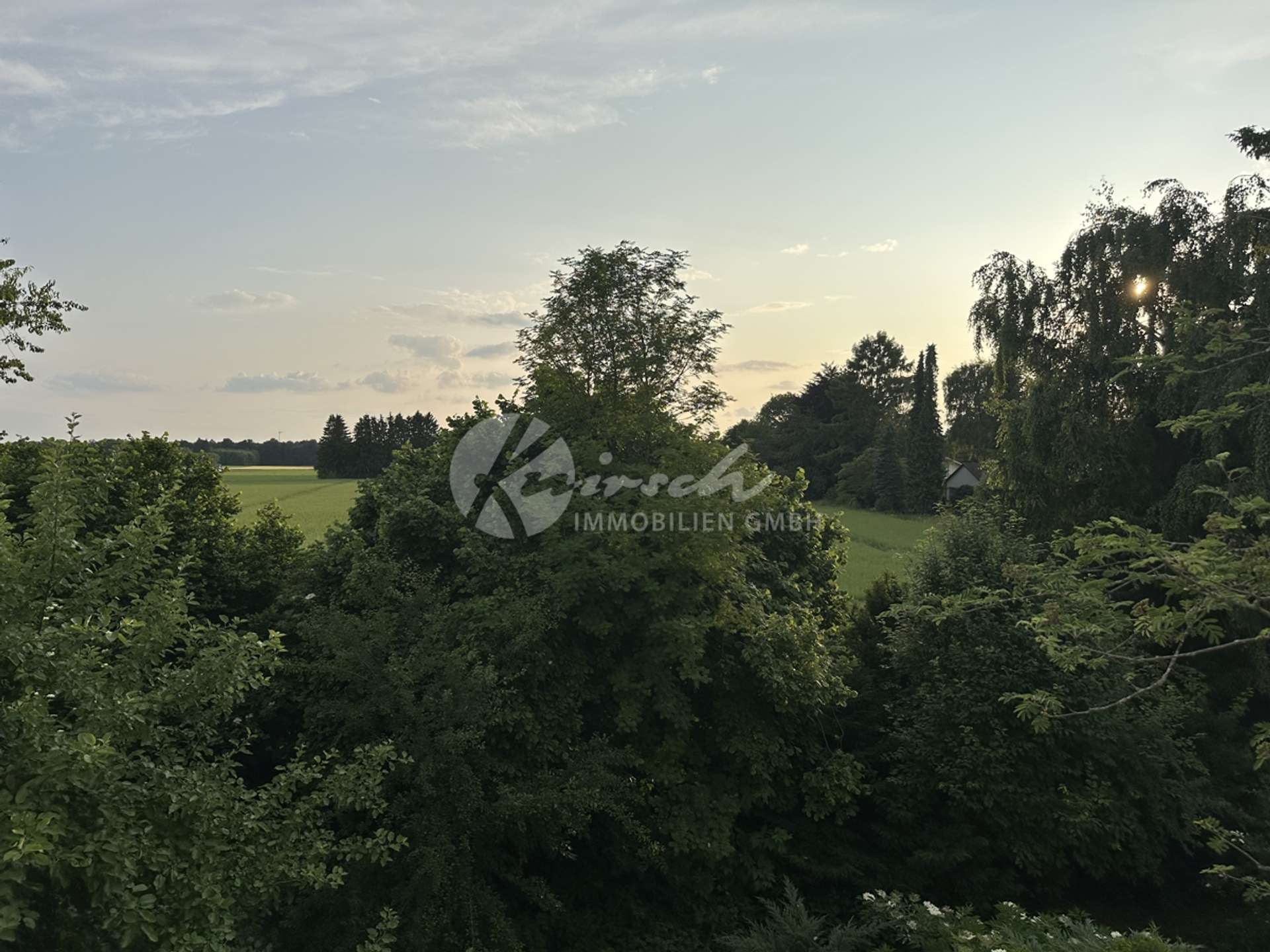 Unmittelbar an das Grundstück schließen sich weitläufige Felder an, die einen unverbaubaren Blick in die freie Landschaft ermöglichen. Hervorzuheben ist insbesondere die Aussicht in westlicher Richtung, die bei guter Wetterlage eindrucksvolle Sonnenuntergänge bietet.