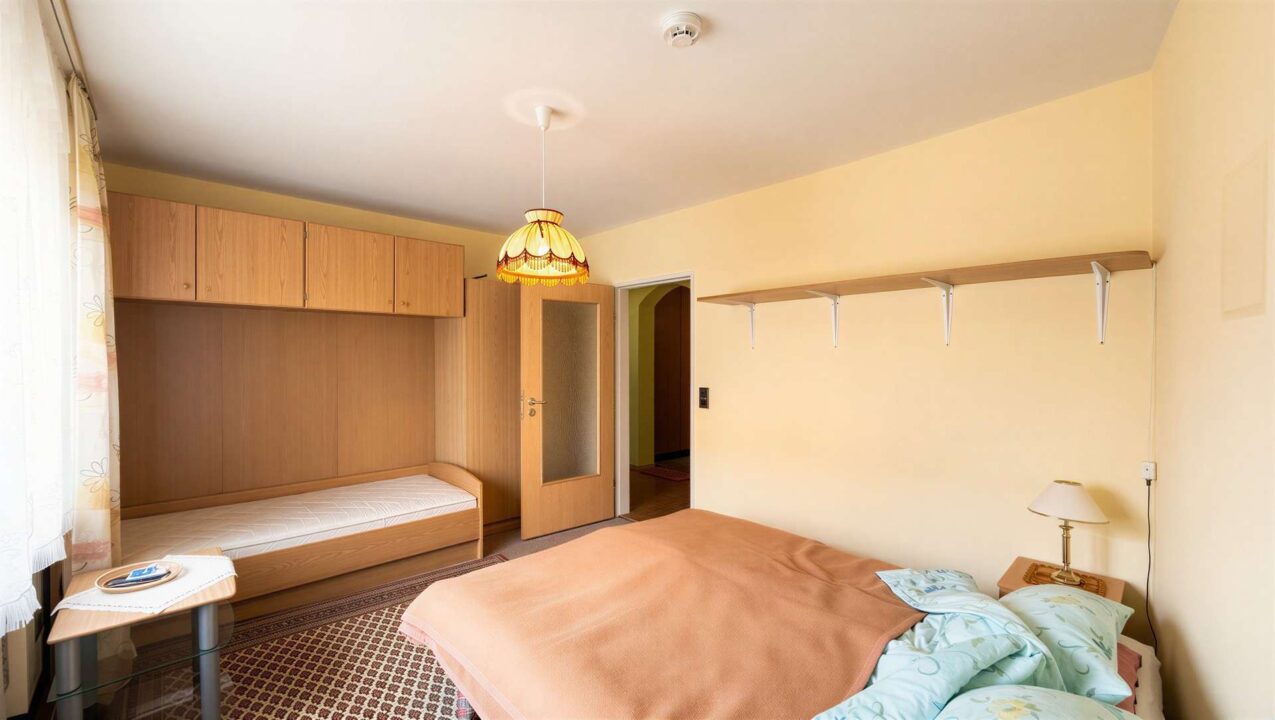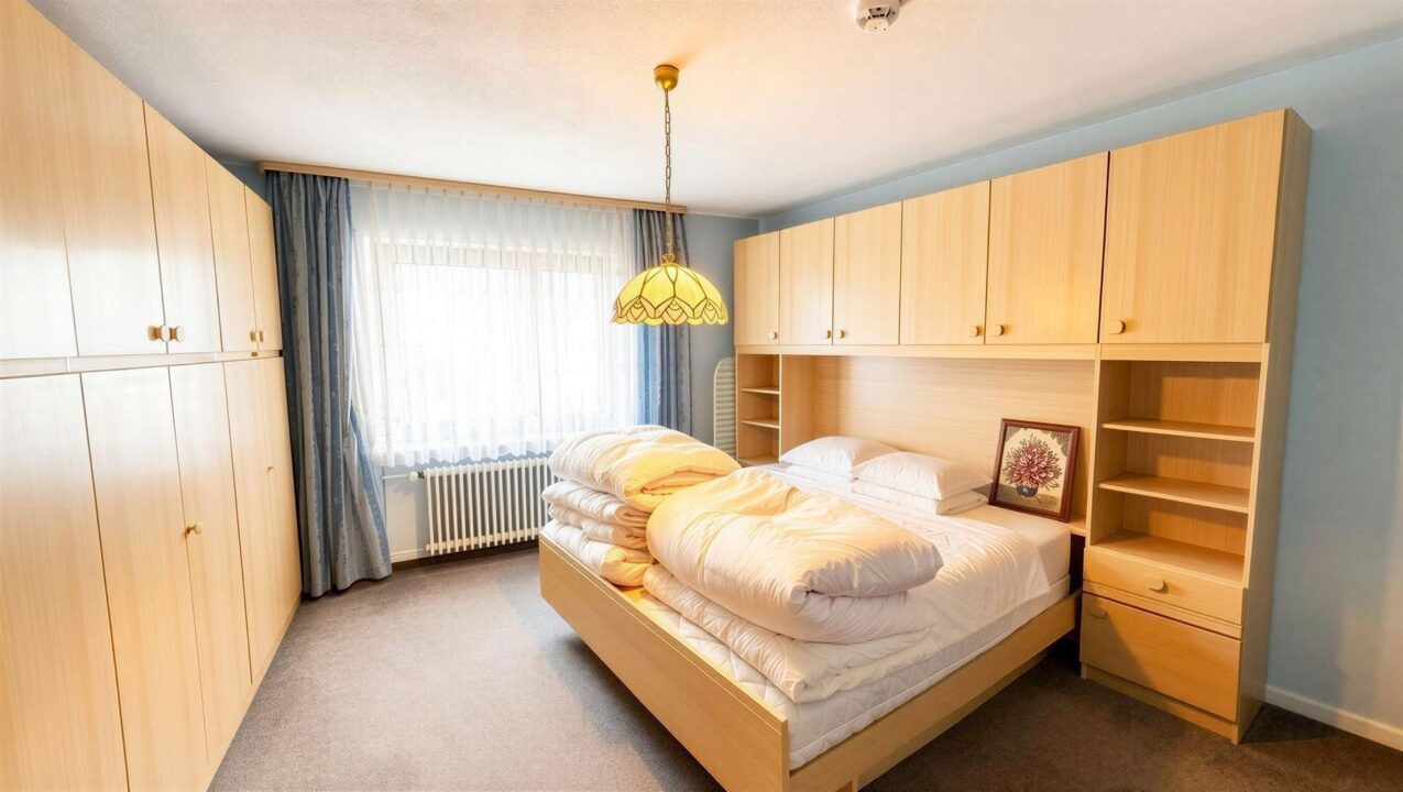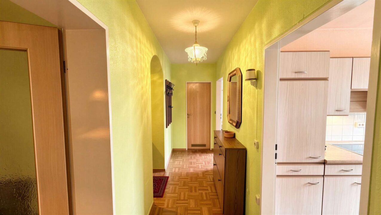 Die Wohnung präsentiert sich in einem soliden, vollständig nutzbaren Zustand und bietet in allen Räumen eine gewachsene, funktionale Ausstattung. Im Wohn- und Flurbereich sorgt Parkettboden für ein warmes Raumgefühl, während die Schlafzimmer mit Teppichboden ausgelegt sind. Beide Schlafzimmer verfügen über großzügige, raumhohe Einbauschränke, die reichlich Stauraum bieten und beim Einzug sofort genutzt werden können.
