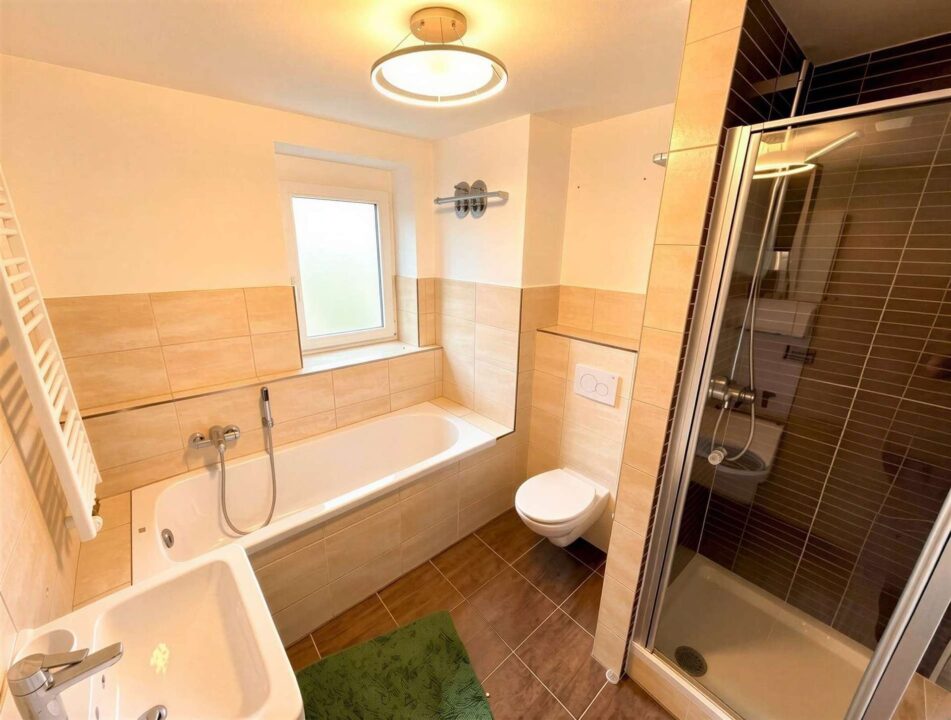 - Fußbodenheizung im Wohnraum und Badezimmer für angenehmes Wohlbefinden