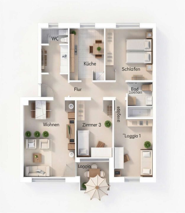 Die Raumaufteilung umfasst vier gut geschnittene Zimmer, die sich flexibel als Wohn-, Schlaf-, Kinder- oder Arbeitszimmer nutzen lassen. Dadurch eignet sich die Wohnung besonders für Familien, Paare mit Platzbedarf oder Käufer mit Homeoffice-Anspruch.