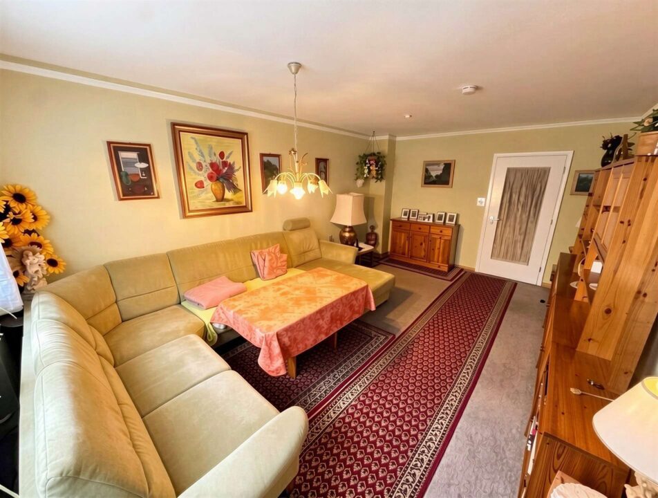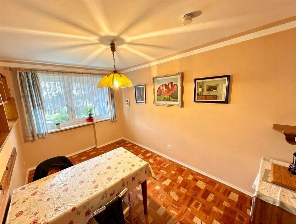 Der Wohnbereich ist großzügig geschnitten und bietet ausreichend Platz für eine Wohn- und Esskombination. Große Fensterflächen sorgen für eine angenehme Belichtung und einen schönen Bezug zum Garten. Die Bodenbeläge sowie Wand- und Deckenoberflächen entsprechen einem älteren Ausstattungsstandard.