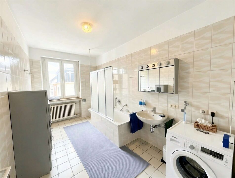 Hohe Decken unterstreichen die großzügige Raumwirkung und verleihen der Wohnung eine besondere Atmosphäre. Das helle und einladende Badezimmer überzeugt durch seine angenehme Größe.