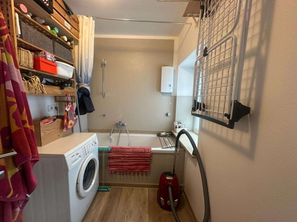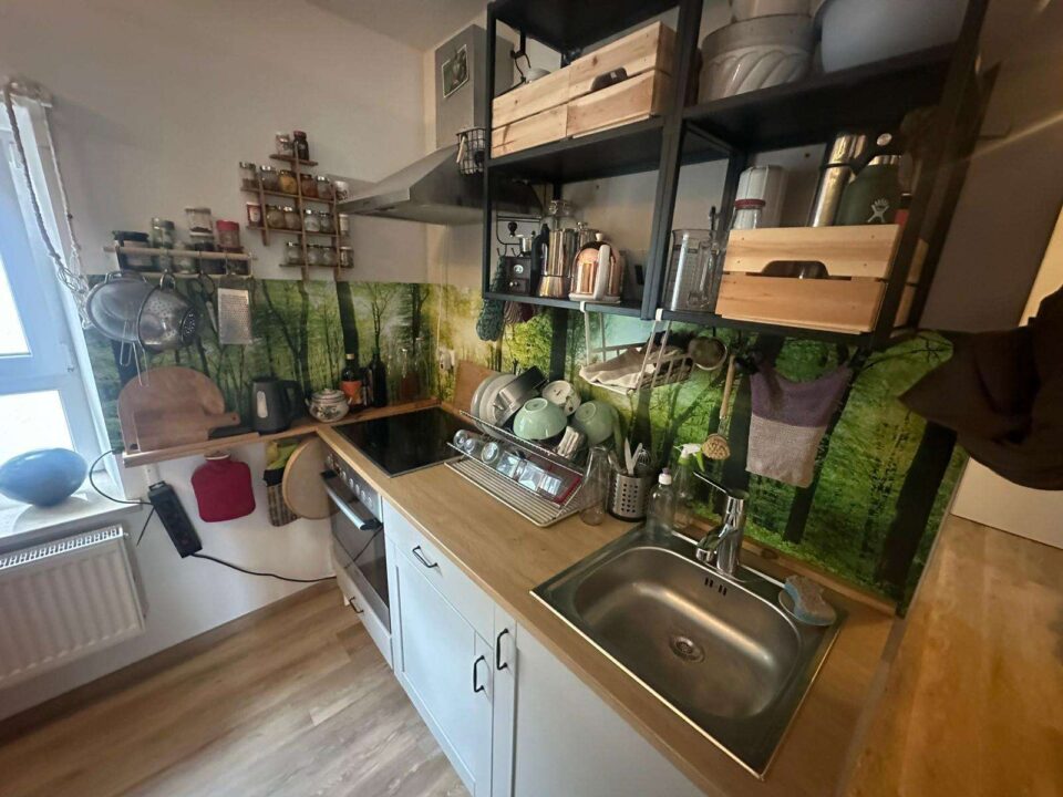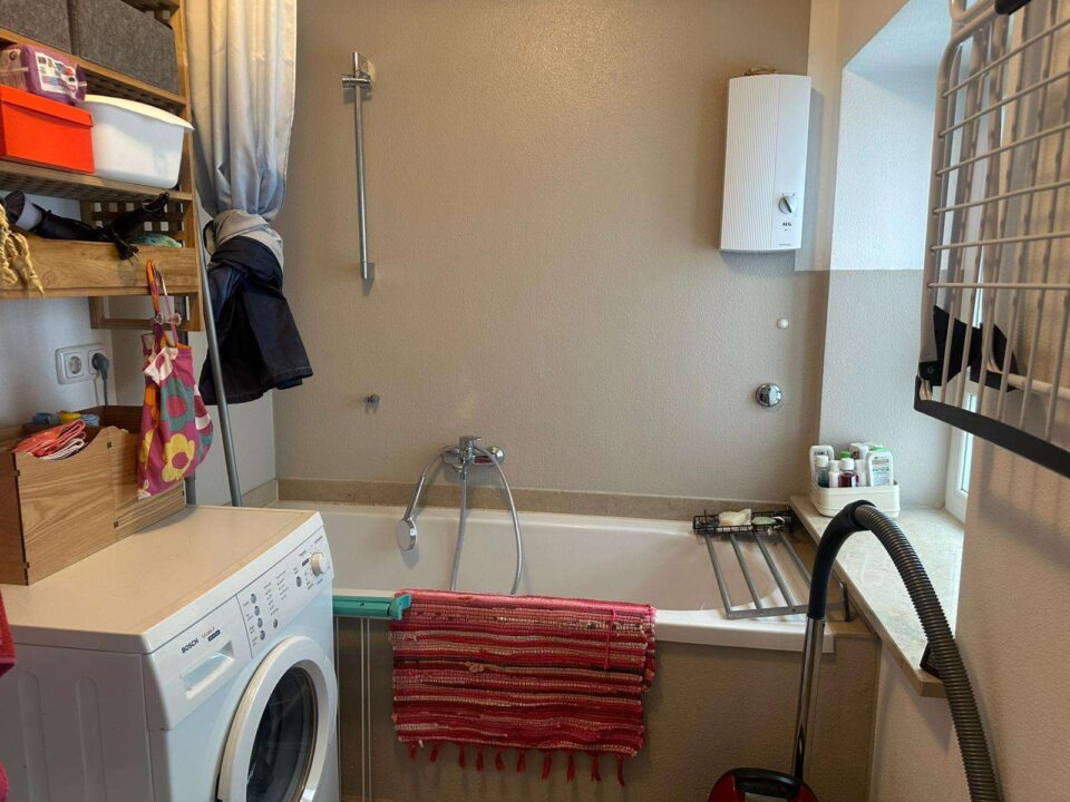 Die Küche kann von den Vermietern abgelöst werden. Das Badezimmer ist mit einer Badewanne ausgestattet und verfügt über ein Fenster – ein echtes Pluspunkt für Licht und Lüftung.