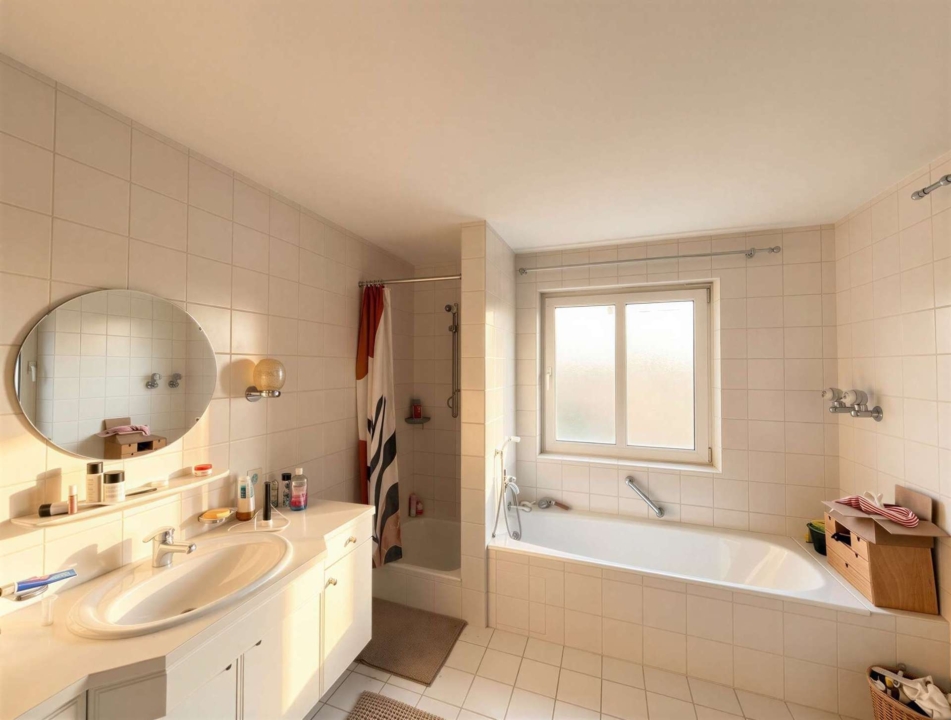 • Zwei Bäder mit Dusche, Badewanne, Fenster und Waschmaschinenanschluss