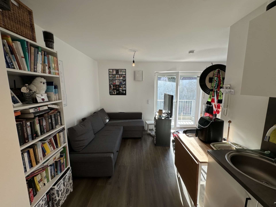 Die Wohnung befindet sich im 1. Obergeschoss und verfügt über eine durchdachte Raumaufteilung auf ca. 25 m² Wohnfläche. Der Wohn und Schlafbereich ist offen gestaltet und bietet ausreichend Platz für ein Bett, einen Arbeitsplatz sowie einen Ess oder Wohnbereich. Große Fensterfronten sorgen für viel Tageslicht und schaffen eine angenehme Wohnatmosphäre. Vom Wohnraum aus gelangen Sie direkt auf den sonnigen Balkon, der einen angenehmen Außenbereich zum Entspannen bietet.