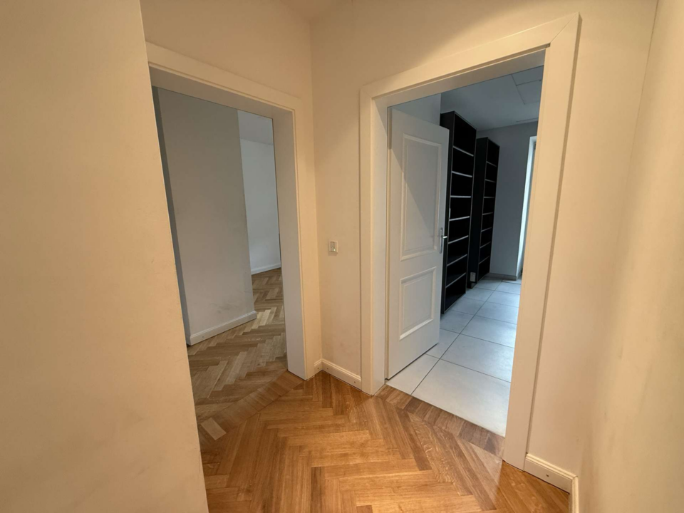 Auf rund 117,85 m² Wohnfläche erwarten Sie großzügige, lichtdurchflutete Räume mit klassischen Altbaufenstern sowie ein durchgängiger Fischgrätparkettboden, der eine warme, stilvolle Atmosphäre erzeugt. Die Wohnung verfügt über mehrere geräumige Zimmer, eine morderne Küche, zwei vollwertige Bäder sowie einen zusätzlichen Raum, der ideal als Homeoffice, Gäste- oder Ankleidezimmer genutzt werden kann.